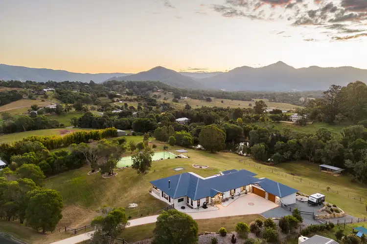 You are instantly relaxed as you enter the flowing interiors that feature a spacious single-level layout offering four bedrooms, a home office and light-filled open living spaces floored with premium Blackbutt timber. A central entertainer's kitchen is superbly finished with a high-end induction cooktop and butler's pantry, plus there is a fully equipped media room with projector and surround sound, formal lounge room, and a deluxe master retreat capturing gorgeous mountain vistas.