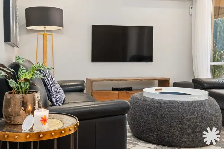 Step outside, and you're greeted by a wealth of features that elevate your living experience. A vast decked patio invites you to entertain under the open sky, surrounded by landscaped Australian-style gardens. For cooler evenings, a large fire pit sets the stage for cosy gatherings. The home is environmentally savvy too, boasting 6kW solar panels and has two reverse cycle split systems for heating and cooling.