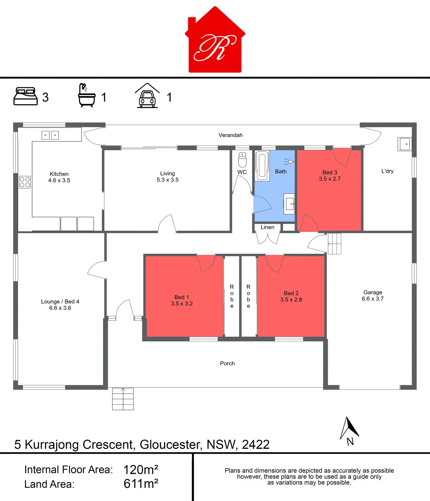 3 Bed • 1 Bath • 1 Car • 607m²
