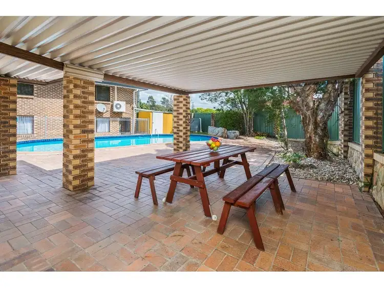 The home's fabulous covered outdoor entertainment area is perfect for casual get-togethers and summer pool parties. The covered area is powered for lights and music and features a BBQ. This area is perfectly positioned to catch the morning sun, offering the perfect place to relax. The backyard also features a great grassy area for kids and pets, a shed, and an eco-friendly water tank. With plenty of room for guests, children, and pets, this property is perfect for a family that loves to entertain.
