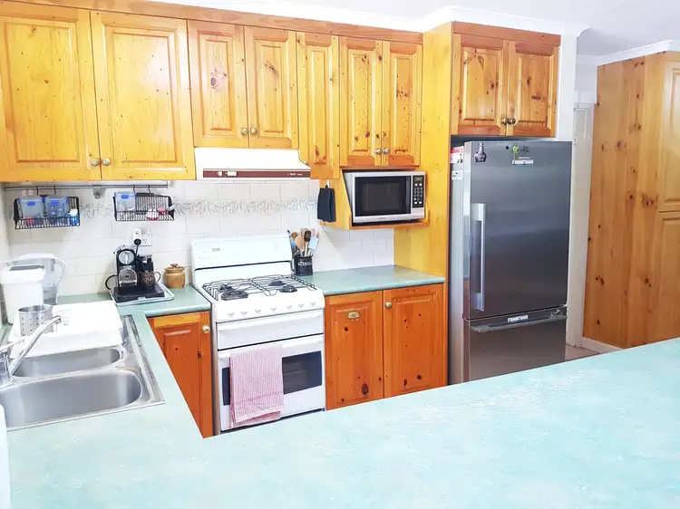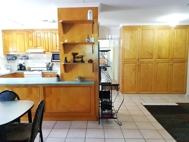Entry is through the wood-panelled hallway that opens up to the open plan lounge/dining/kitchen area. The dining area has plenty of space to utilise ? set up bar stools at the breakfast bar or go for a more formal dining area with a large table and chairs. A wood burning stove sits in the far corner to provide heat during those chilly winter days while evaporative air conditioning runs throughout, keeping the home comfortable during the blistering summer days. The kitchen has an abundance of cupboard space, along with ceiling to floor pantry space and gas cook top. The separate family room is spacious with ceiling fans, a split system air conditioner and a large walk-in storage space in the back corner. All the living areas are tiled, so clean up is quick and easy.