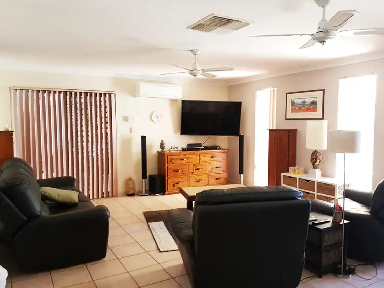 The covered outdoor entertaining area is good-sized with a ceiling fan to help beat the heat and overlooks the well-maintained yard. Mulch beds along the fence line have many shade-providing trees and palms. A large garage sits off to the right with a shade sail covered area right next to it ? a great space to set up a workshop. Along the other side of the house is a partially covered paved area that could serve as extra storage space and houses a garden shed. There is even a chook run with resident chooks that are currently supplying eggs for the family.