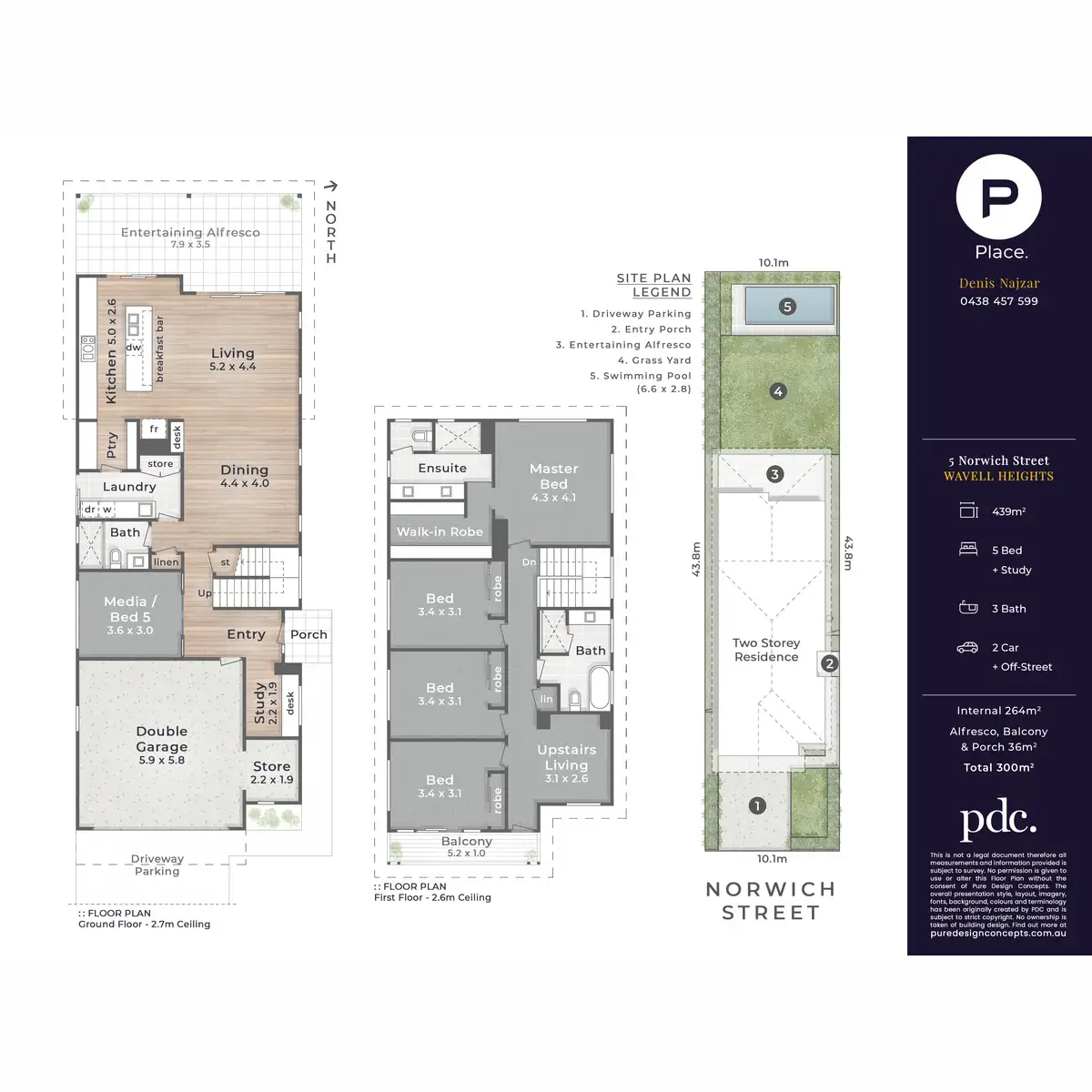 Providing additional family space, a second living area resides upstairs, and a media room downstairs is destined for movie nights or can serve as a fifth bedroom. The floor plan has four extra bedrooms with beautiful hillside views and three luxurious bathrooms with feature tiles. The master suite unveils a walk-in robe and a dual vanity ensuite, while the fourth bedroom opens to the front deck.