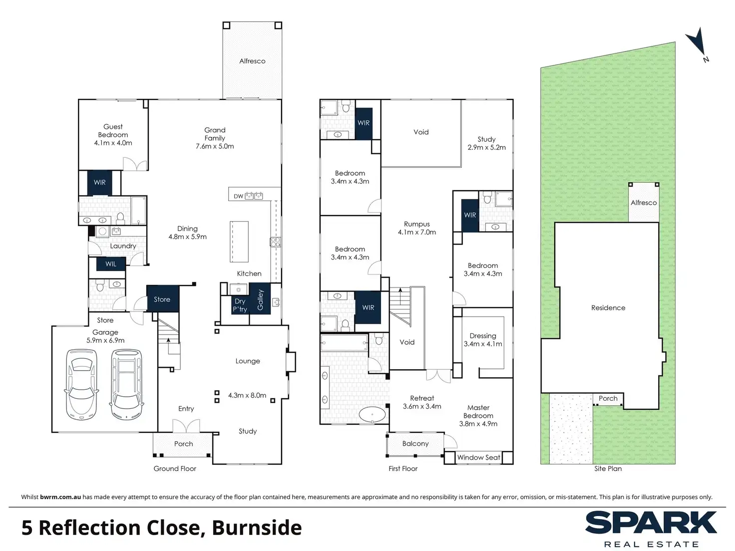 Throughout the home, no detail has been overlooked. Premium inclusions such as refrigerated heating and cooling, LED down lights, three-phase power, ducted vacuum system, CCTV & fireplace connection provisions completed, 400mm stone benchtops through-out kitchen, laundry and bathrooms, tiles to ceilings and niche to all five ensuites, designer floating vanities, upgraded showers and tapware's, soaring ceilings, and an abundance of built-in storage further elevate the home's appeal. The oversized 2.5 car garage includes internal access, roller door side access capability, and additional space for storage - perfect for growing families with active lifestyles. A full-sized, well-appointed laundry further enhances the home's practicality, and the striking staircase anchors the home's grandeur and sense of space.
