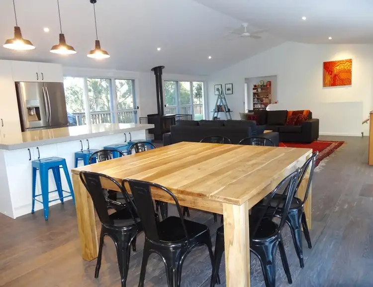 As you enter the home into the spacious, open plan living/kitchen/dining area, you will be wowed by the high, raking ceilings and floor-to-ceiling windows that let the natural light stream in. Your eyes will be immediately drawn outside through the glass sliding doors to the large deck, the view from which leaves you feeling as though you are in the tree tops.