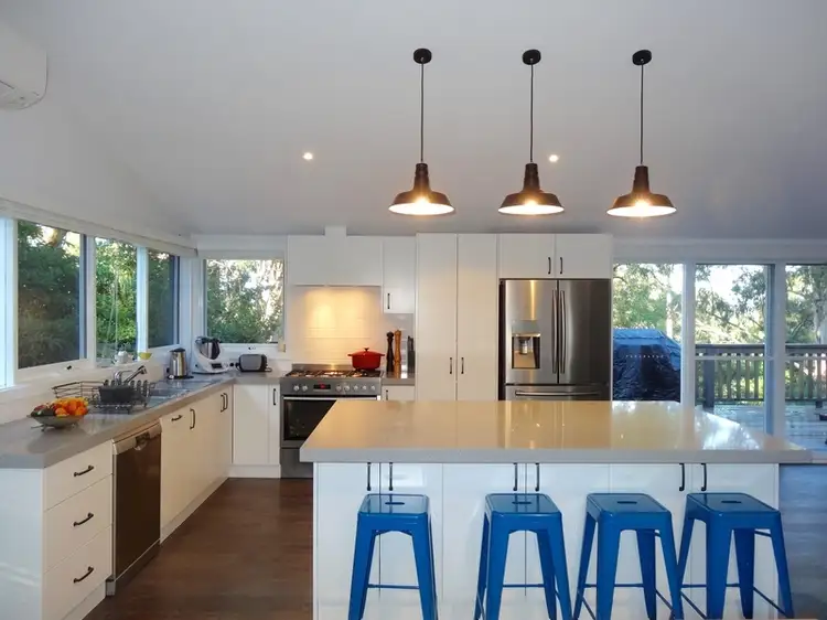 You will find a modern kitchen over-looking the garden with chunky stone bench tops and island, quality stainless steel appliances including a 90cm 6 burner gas/electric oven, and loads of storage space in the soft-closing cupboards and drawers. This dream kitchen is a delight for anyone who loves to cook and entertain. With an adjacent dining area or the option of al fresco dining on the deck, this room allows for a seamless indoor- outdoor flow. Underfoot you will find high quality timber flooring which leads to luxurious wool carpets in the bedrooms and other 2 living areas.