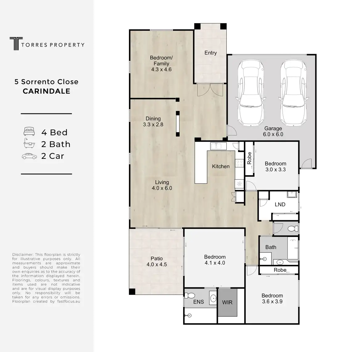 Disclaimer: Whilst every care is taken in the preparation of the information contained in this marketing, Torres Property will not be held liable for any errors in typing or information. All interested parties should rely upon their own enquiries in order to determine whether or not this information is in fact accurate.