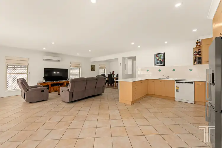Adorned with a tiled entryway, the home opens to reveal an air-conditioned lounge and dining area. Filled with natural light and extending with ease out to the rear patio, this spacious living zone caters perfectly to busy family life with its versatile and functional design.