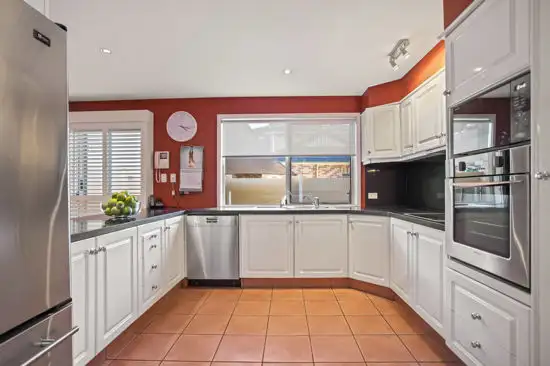 -Generous, practical kitchen with large walk in pantry, neutral white 2 pac cabinetry, black granite bench tops, Miele dishwasher
