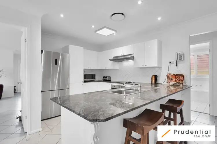 The living room flows into the open-plan kitchen, dining, and meal area, providing a perfect space for entertaining guests or spending quality time with family. The bright and airy kitchen features stone benchtops, plentiful cupboard space, electric cooking, and stainless steel appliances, making it a chef's dream. The dining area also offers a lovely view of the pool, creating a serene and relaxing atmosphere.