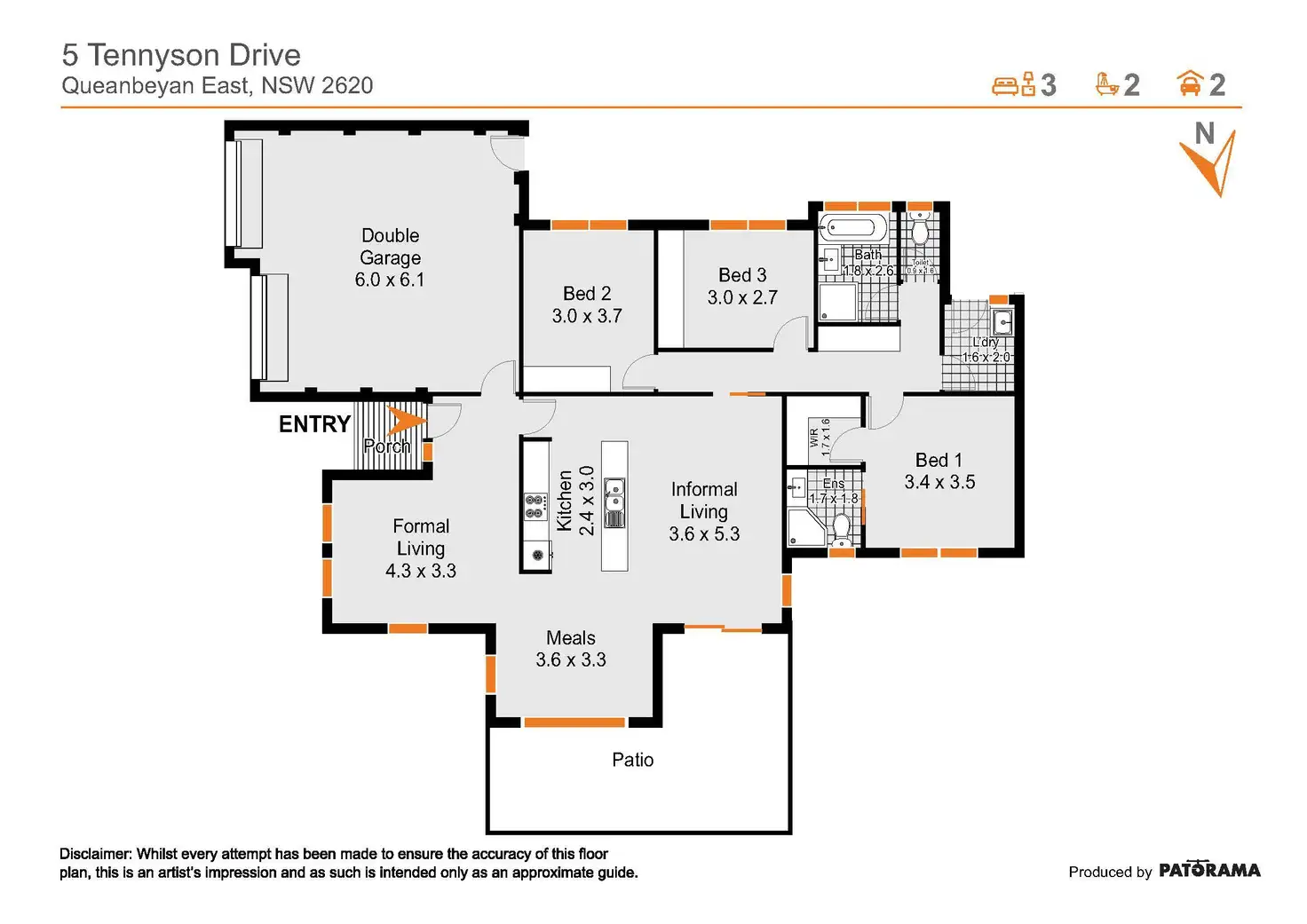 3 Bed • 2 Bath • 2 Car • 529m²