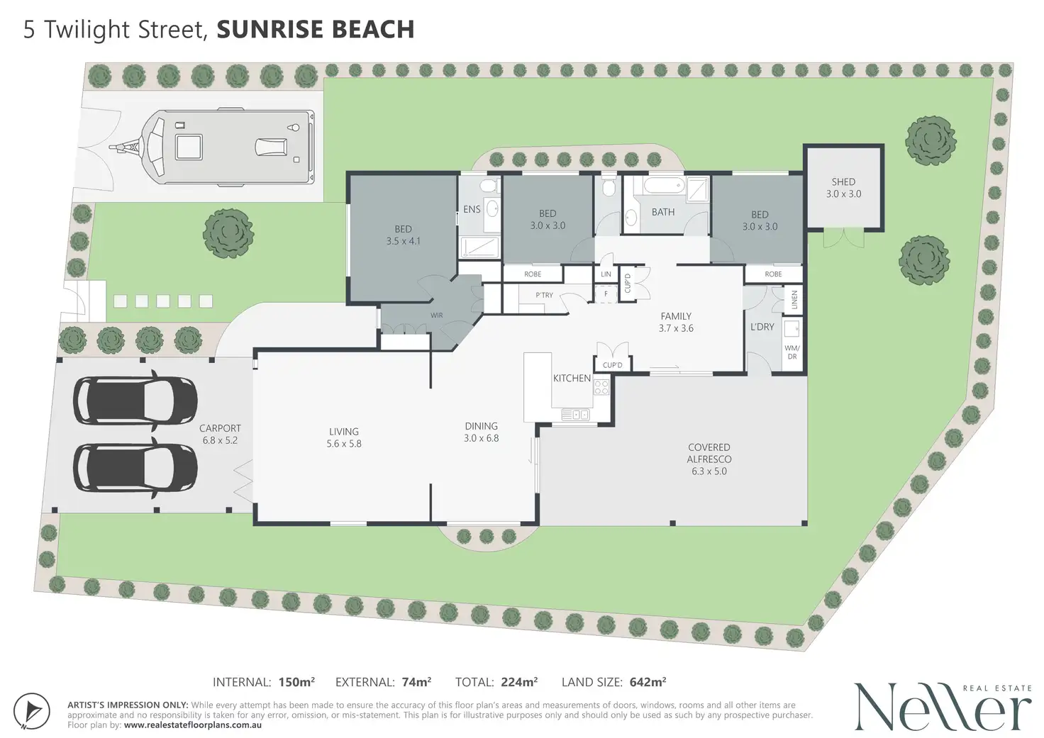 • Double carport + side access for boat