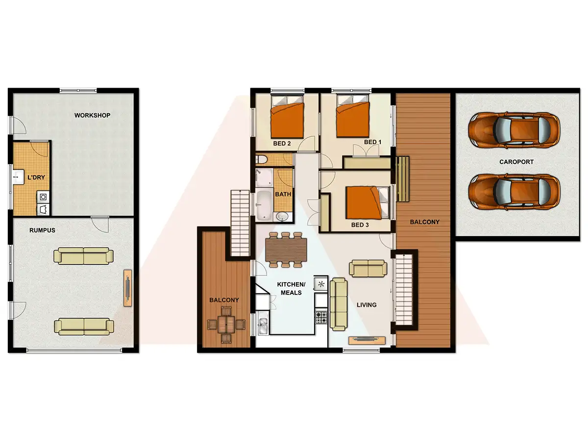 A perfect air-conditioned living area with feature raked ceilings offers peaceful views to the outside and flows gently through to your light filled kitchen, with adjacent meals area.