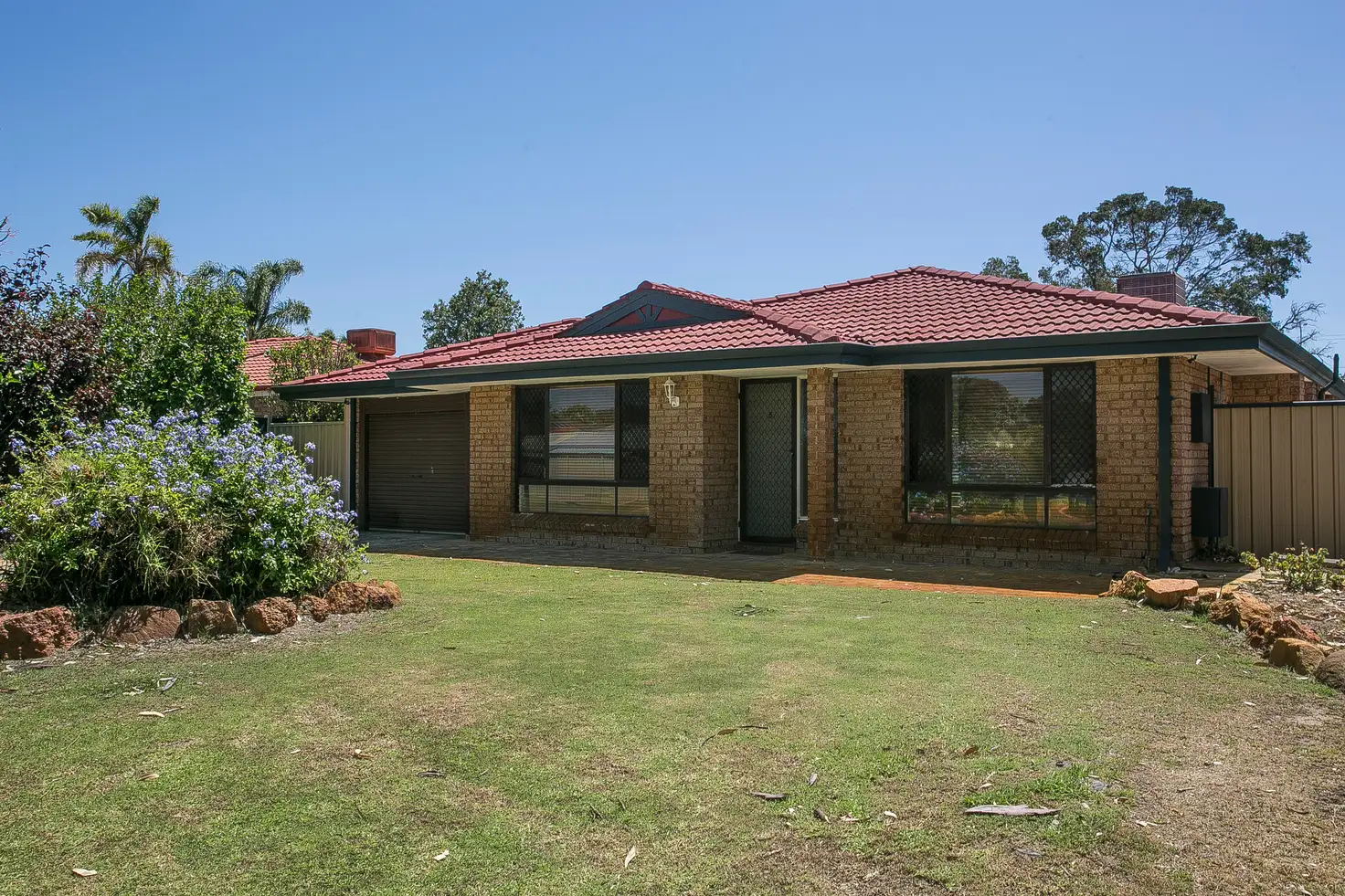 Drive up to the front of the home and park inside the driveway or securely inside the single car garage, built under the main home itself. Walk along a tidy paved path to the door at the front of the home. The front yard enjoys a lovely and manicured grass setup and there’s plenty of large windows providing you a beautiful vantage over your slice of Beechboro.