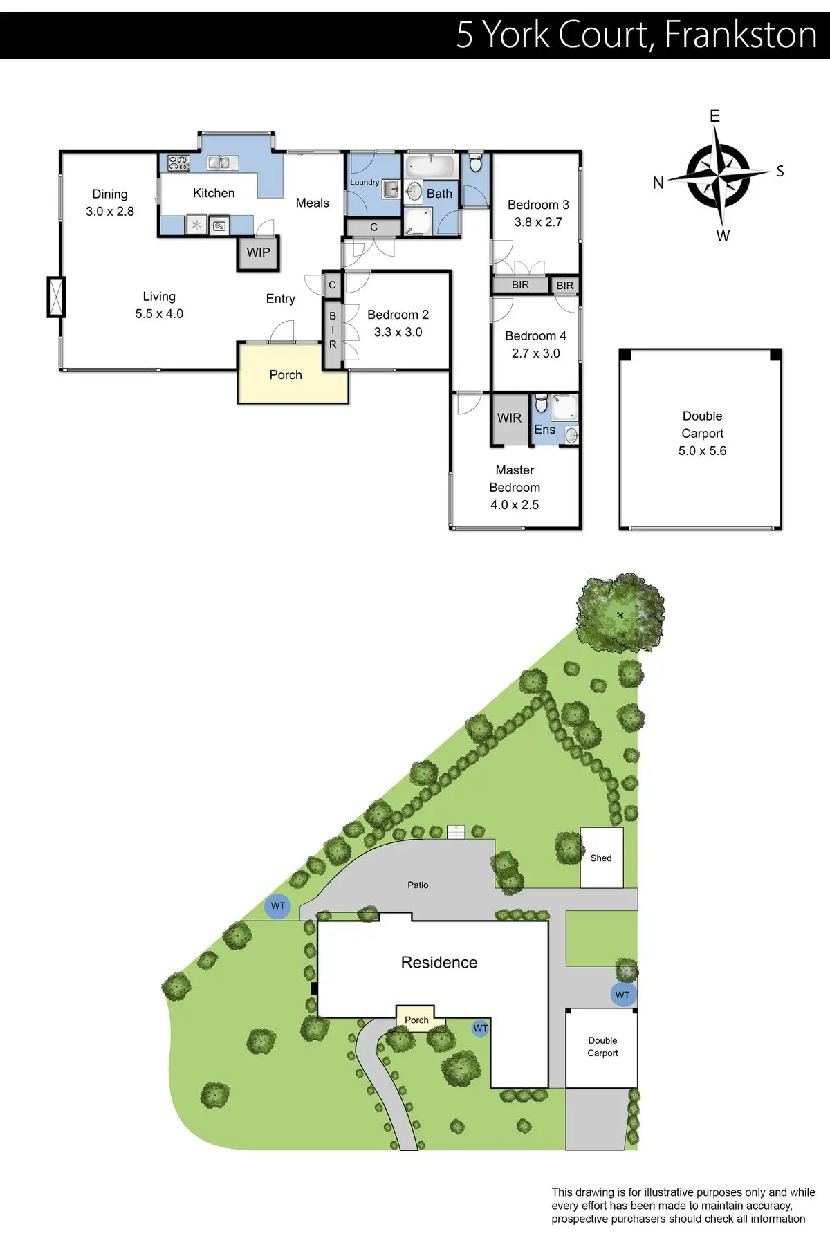 • Living and dining room, open plan kitchen and meals area, four robed bedrooms, two bathrooms, WC and laundry