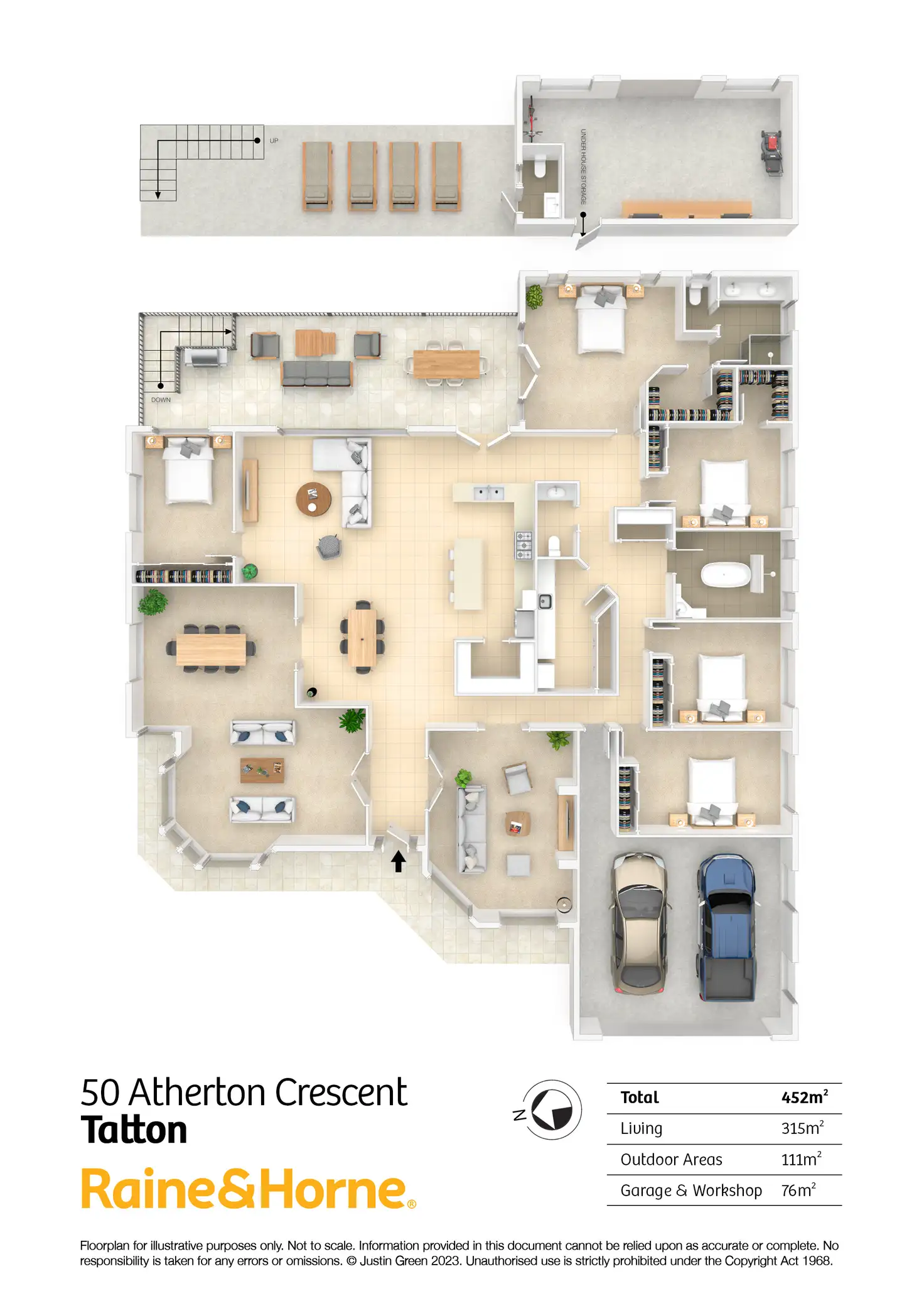 With a double garage, there is plenty of space for parking and storage. Additional features of this property include zoned reverse cycle aircon, ceiling fans, a huge powered workshop & storage area, 315sqm's of living.