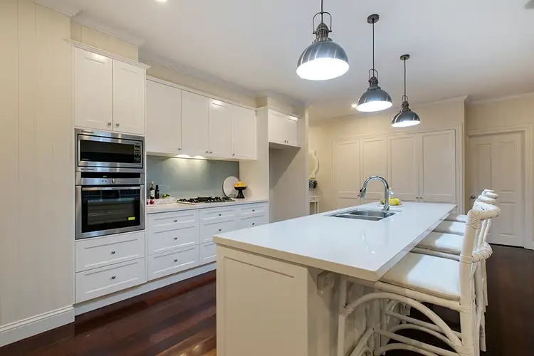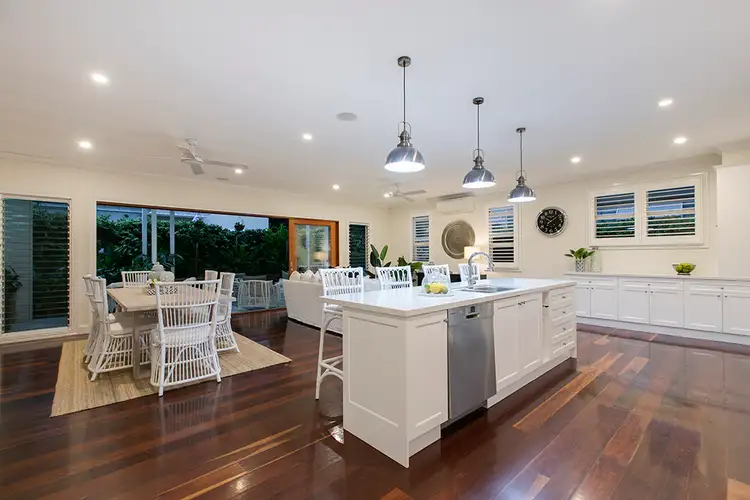 A large open plan extension to the existing home blends contemporary convenience with the charm of the original Queenslander. High ceilings, generous windows & a neutral dcor create light & space. The large family kitchen, the hub of the home, overlooks the dining, living and entertaining terrace & pool, perfect for year-round family gatherings.