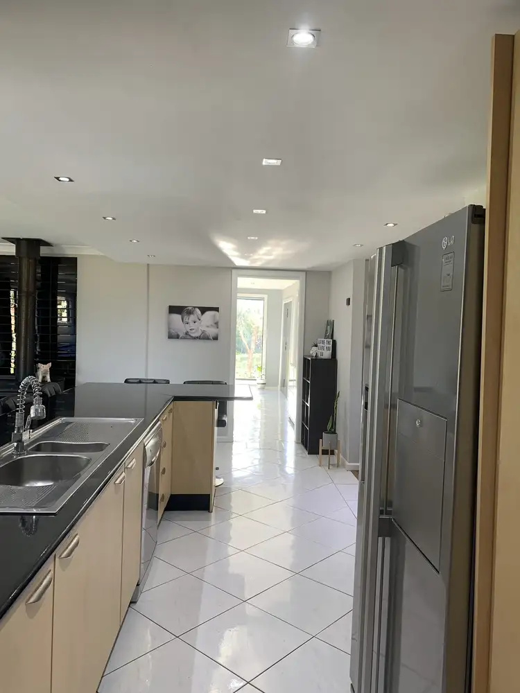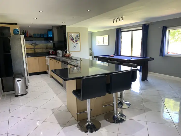 Stainless steel appliances in the kitchen including a dishwasher, range hood and plumbed double door fridge with filtered cold water and ice maker. Large centrally located breakfast bar with plenty of seating to entertain.