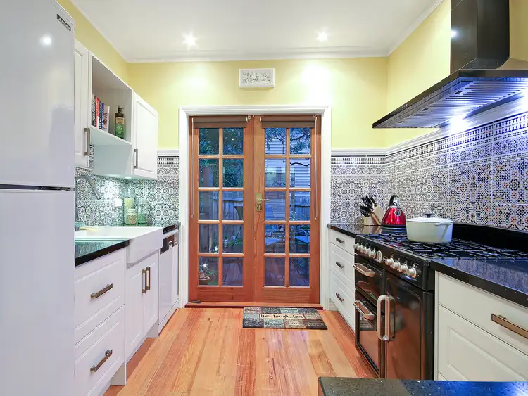 Stunning hardwood floorboards, artfully designed cornices and decorative wall vents, casement windows of the main lounge room blend seamlessly into the lovingly updated kitchen with granite bench tops, dishwasher, soft close drawers, and Euromaid country range style, freestanding cooker with gas cooktop.