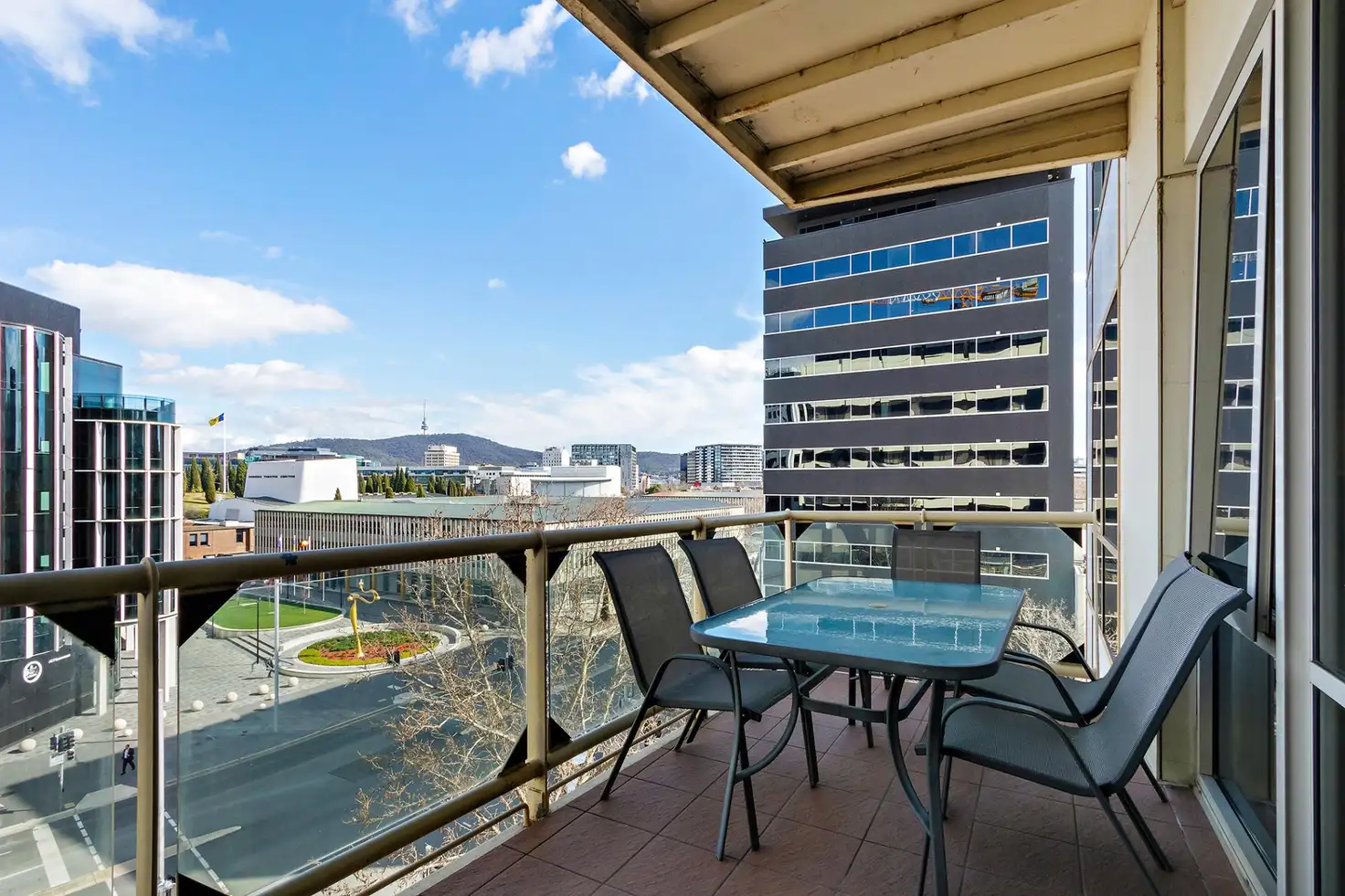 The true highlight of this unit is the balcony, offering sweeping views of Black Mountain Tower and the iconic Canberra Theatre Centre. Whether it's a morning coffee or an evening winddown, these vistas provide a serene backdrop to your daily routine.