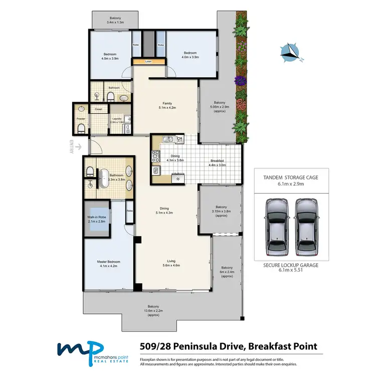 Completed to the exacting standards of the current owner with top-of-the-range finishes and fittings, this magnificent penthouse is the ultimate entertainer. The huge open plan lounge/dining and master suite flow to a covered East-facing balcony capturing breathtaking water, parkland and City skyline vistas. The floorplan has been designed for maximum flexibility and liveability, with seamless indoor/outdoor flow, casual living and dining areas, vogue marble gas kitchen, marble bathrooms, timber floors, zoned A/C, charming views from every room and sliding concealed doors for space separation and privacy. Videophone security, lift access and DLUG plus storage in secure parking completes a unique offering in this sought after waterfront village.