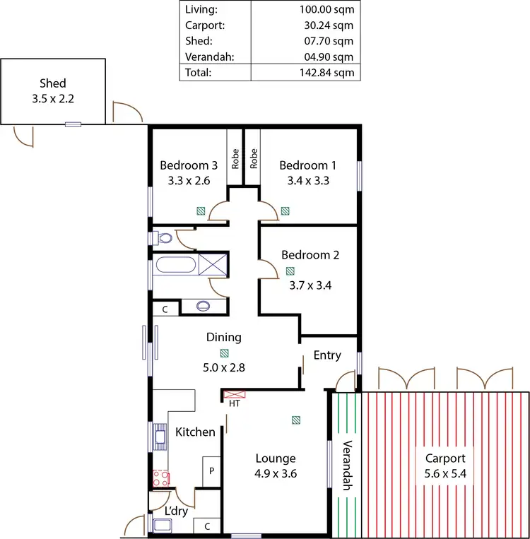 3 Bed • 1 Bath • 2 Car • 726m²