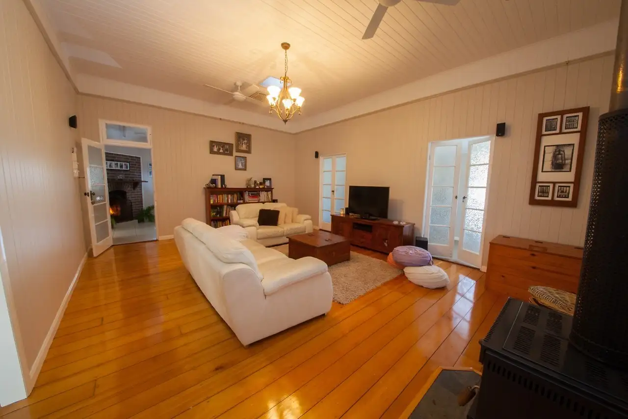 The home features original 6 inch Hoop pine flooring, VJ ceiling and walls. 3 double bedrooms, 2 with large built-in cupboards. The main bedroom is spacious with walk-in-robe and modern ensuite. There is the added convenience of separate dining and lounge areas and second living space, incorporating a study.