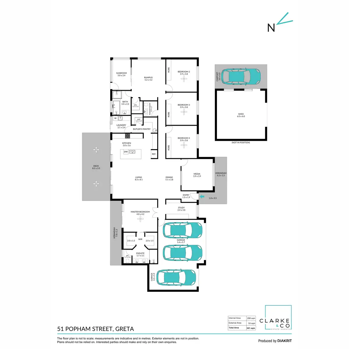 - Attached triple car garage with internal access, plus a 6x6m shed in the yard with a carport, LED lighting and power access