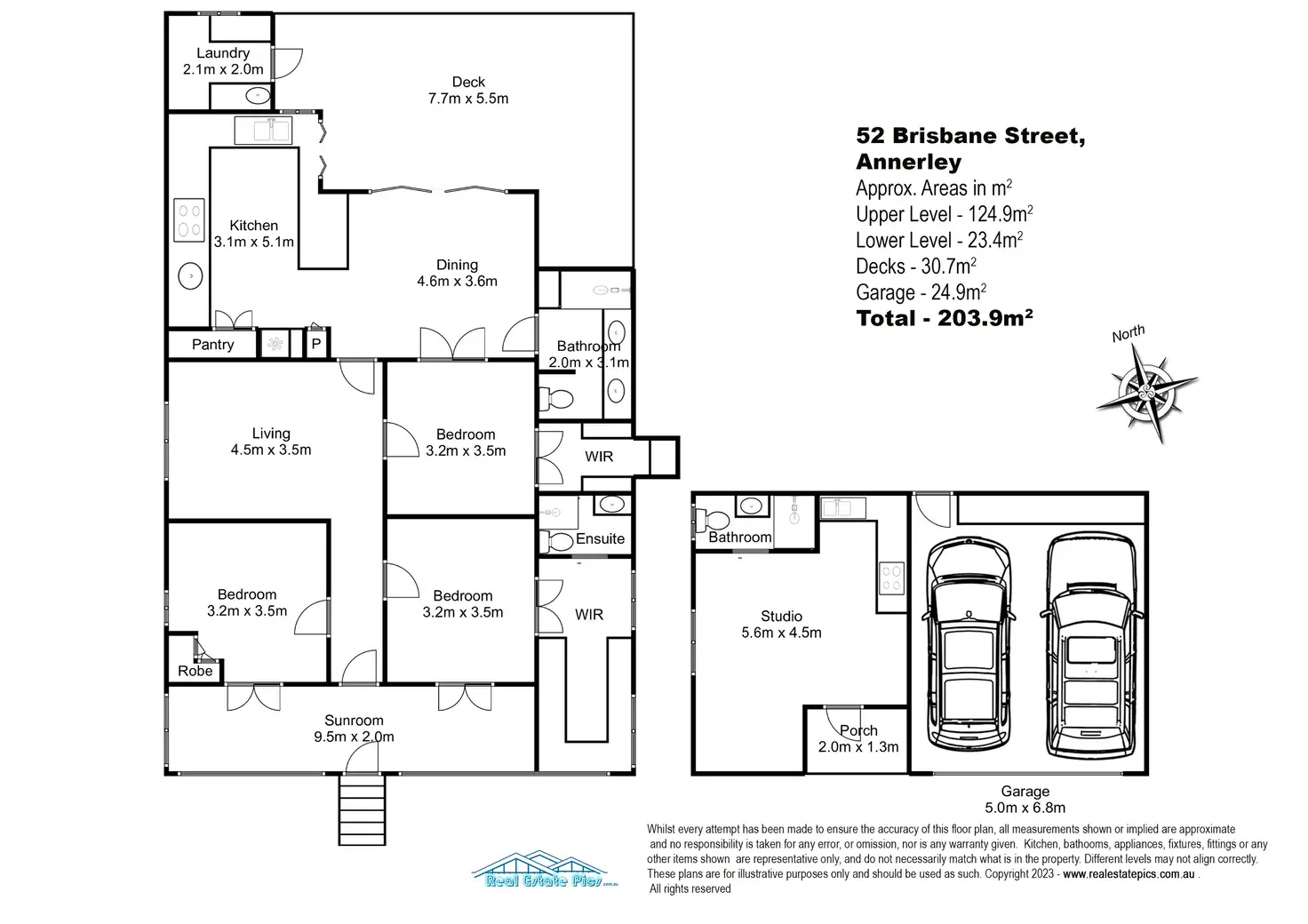 * 3 bathrooms: family bathroom with bath, master ensuite and lower studio bathroom
