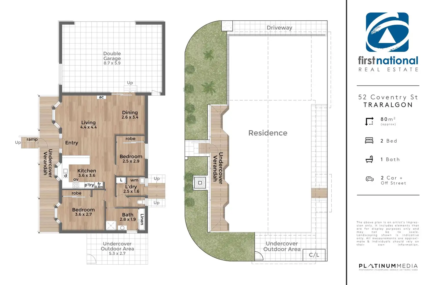 2 Bed • 1 Bath • 2 Car • 80m²