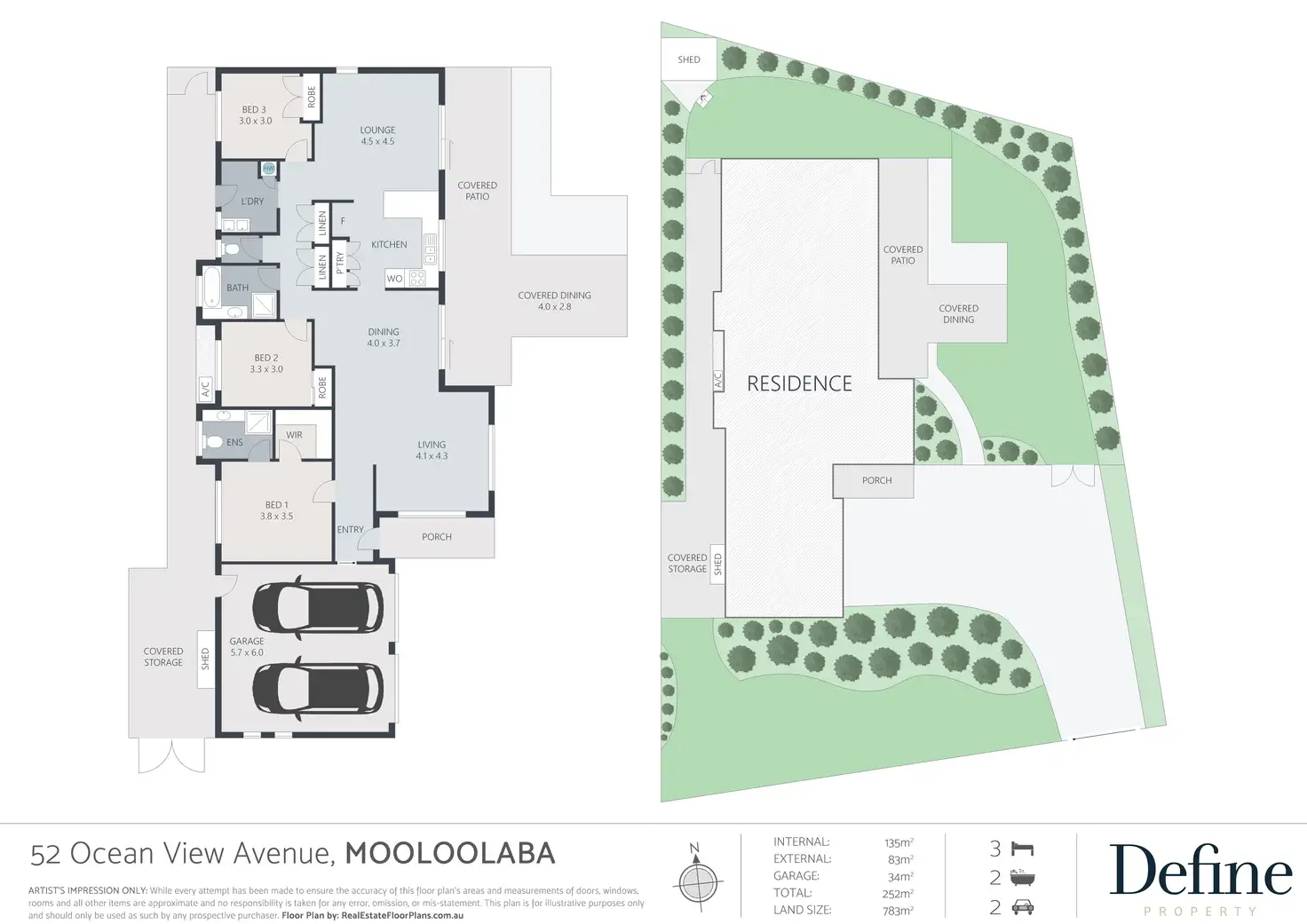 3 Bed • 2 Bath • 2 Car • 783m²