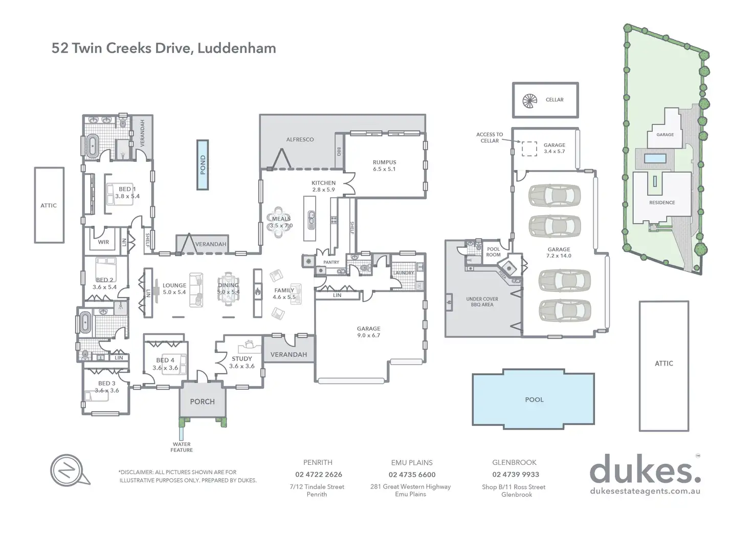 • Fully landscaped surrounds + automatic irrigation + 10,000 litre water tank + App controlled garden lighting on timers + pond with water jets + solar panels