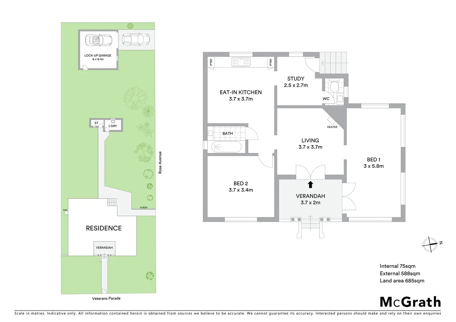 2 Bed • 1 Bath • 2 Car • 695m²