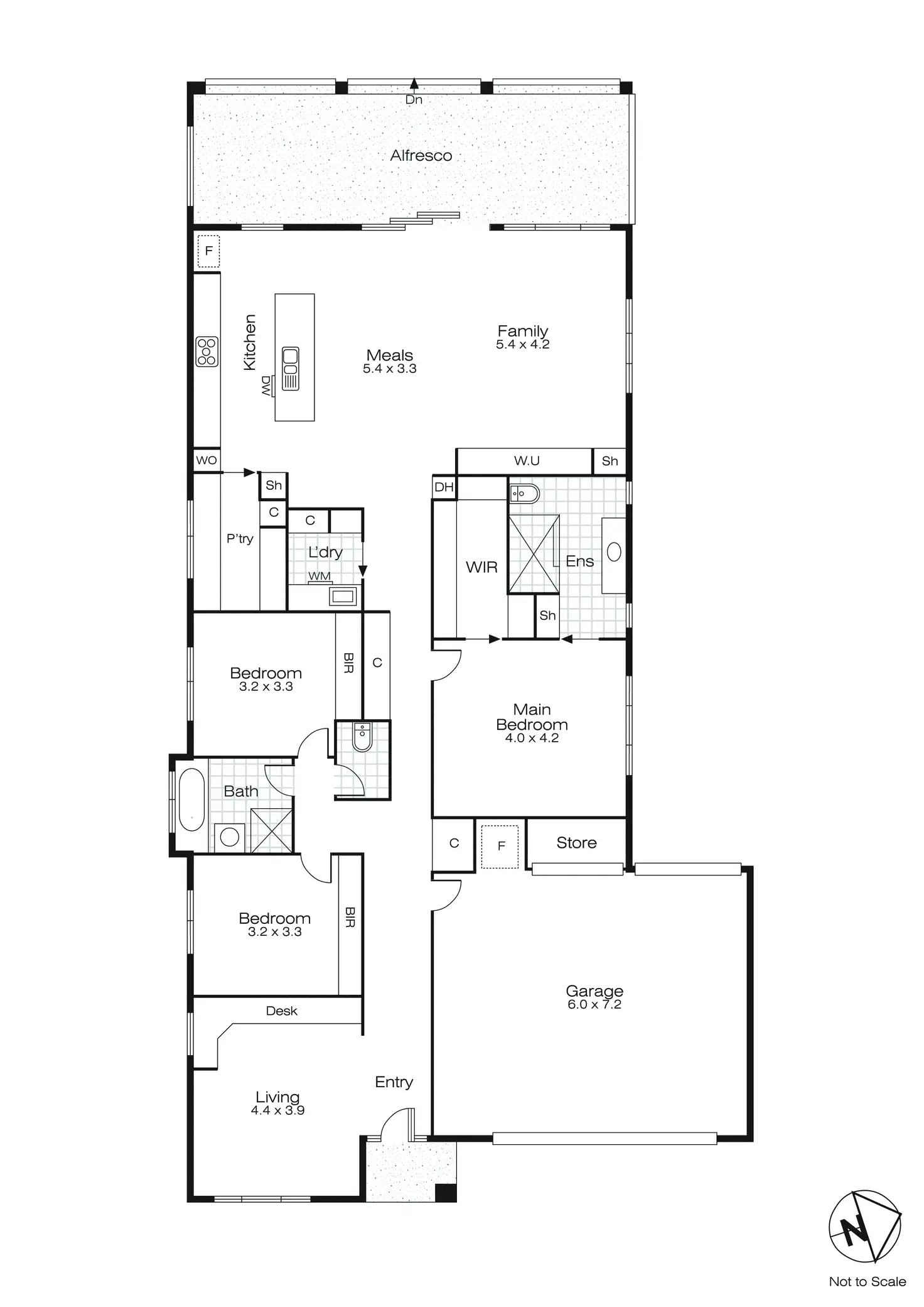 The home boasts three generously proportioned bedrooms, including a master suite with walk-in robe and a private ensuite. At the front, a formal sitting room offers a quiet retreat with built-in storage and an ideal space for a home office or study zone. The heart of the home is the expansive open-plan kitchen, meals, and family room, designed for both everyday living and entertaining. The kitchen features stone benchtops, a full suite of quality appliances, and a large fitted walk-in pantry.