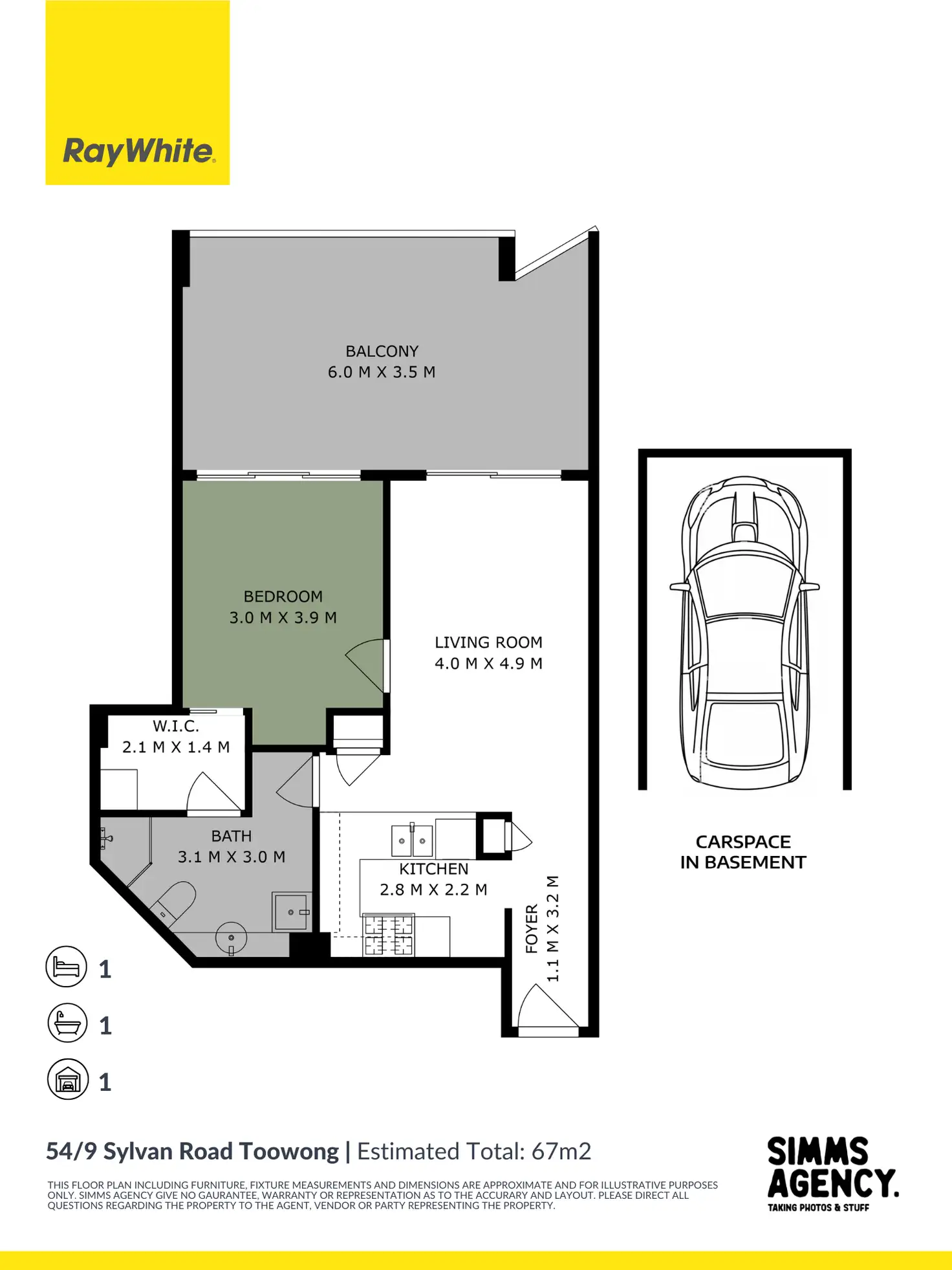 1 Bed • 1 Bath • 1 Car • 73m²