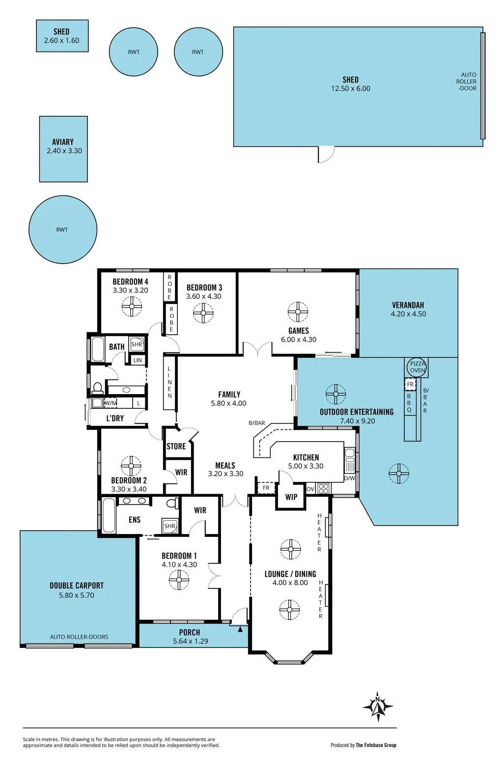 Out in the back yard you'll notice side access via a large sliding gate to a large parking or storage area, ideal for a caravan or a boat. There is also additional off street parking in front of the 12.5m x 6m (approx) shed that is accessible via a roller door and has a concrete floor. There is also a double carport under the main roof of the home with dual automatic roller doors. Beyond the shed there are a number of raised veggie patches, an aviary or chook house, a small garden shed and 2 x 13,500ltr rainwater tanks, plus a large 22,500ltr tank that comes with a pump and plumbed to the house.