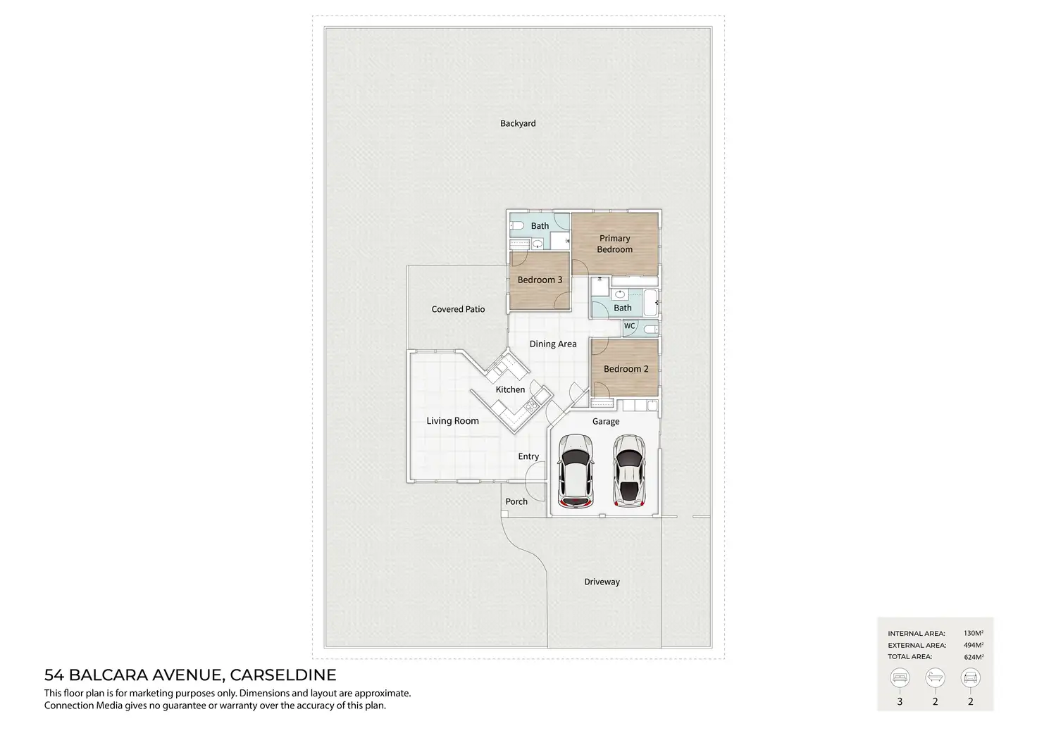 3 Bed • 2 Bath • 2 Car • 624m²