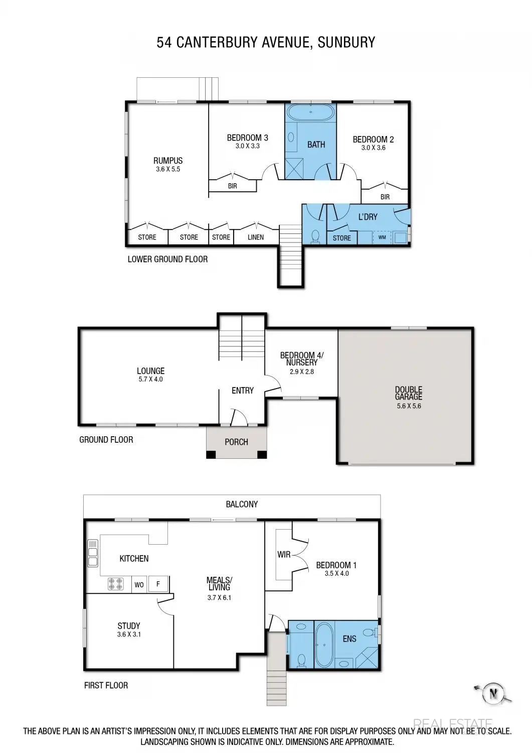 Your exploration continues in to the master bedroom, ideally situated just behind your office cum nursery. The master bedroom has a walk in robe, full ensuite and views to be savoured. The additional 3 bedrooms, on the lower level, are generous in size and share the central family bathroom.
