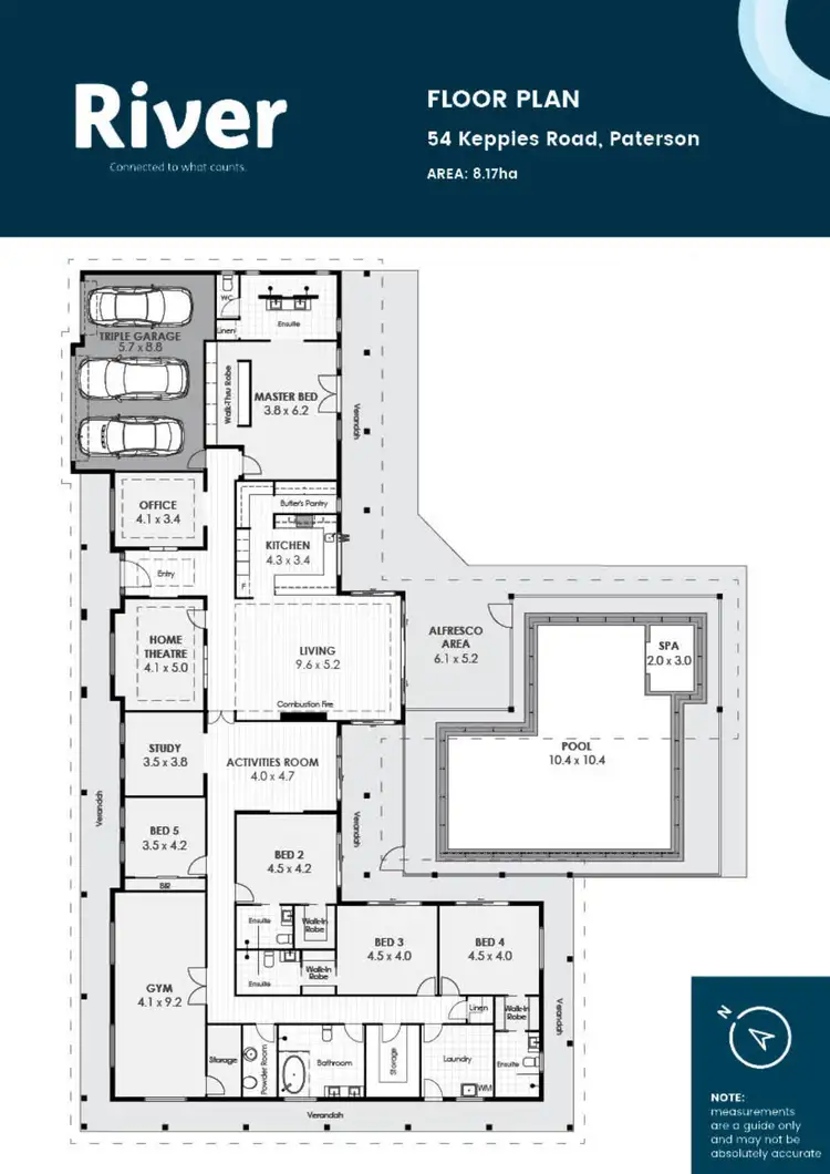 Luxury and leisure inform the sophisticated palette of quality finishes used throughout the vast layout. The relaxed resort mood is achieved through a thoughtful arrangement of space around the central designer pool and spa in the alfresco area.