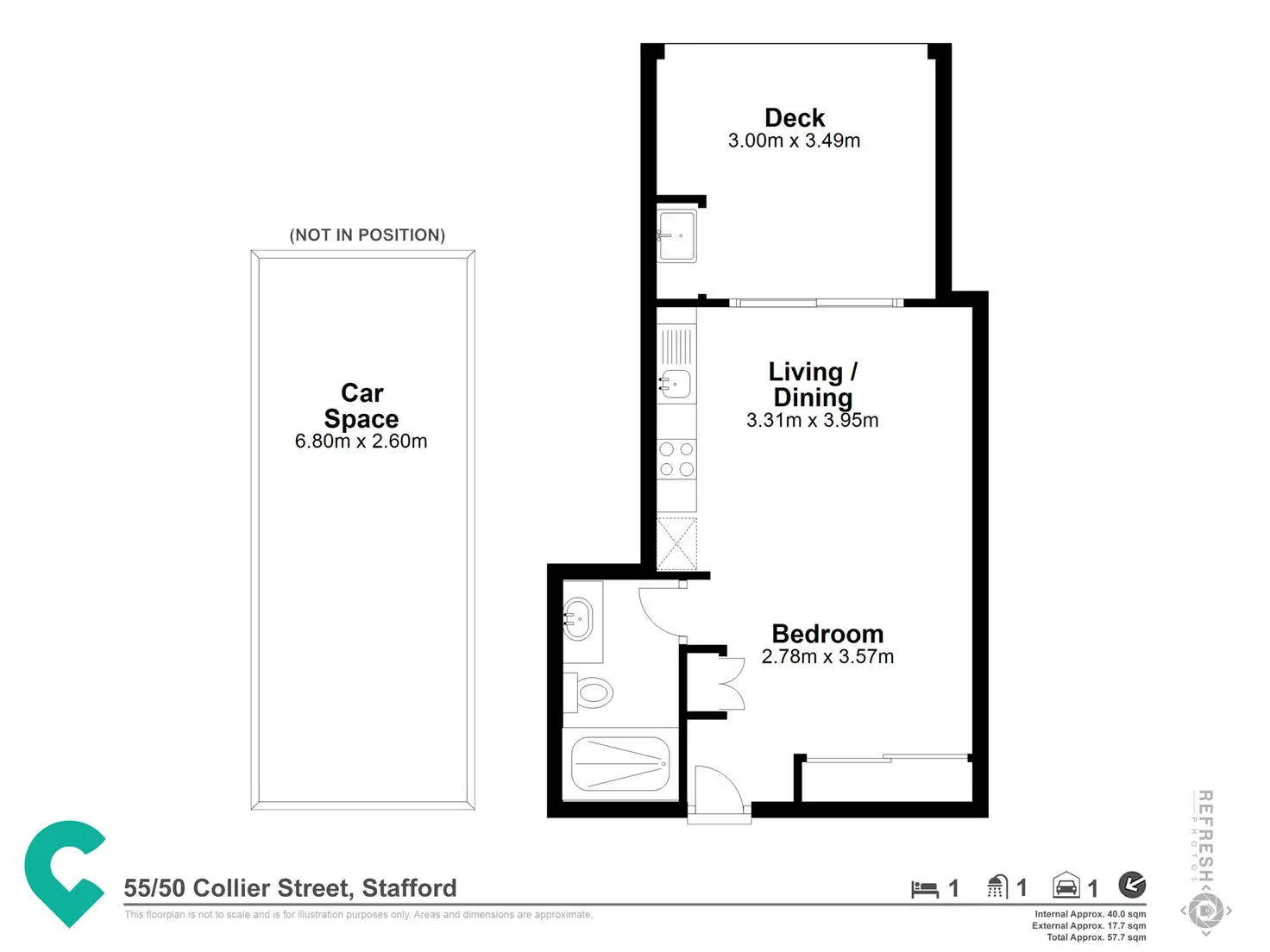 1 Bed • 1 Bath • 1 Car • 57m²