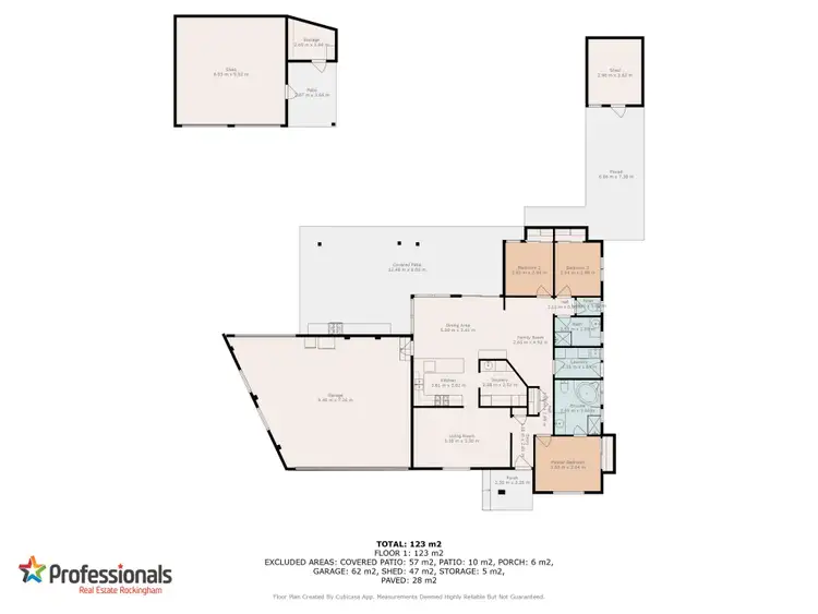 - Exposed aggregate driveway to 62m2 double garage, with an additional height access and roller door to the rear for drive through access