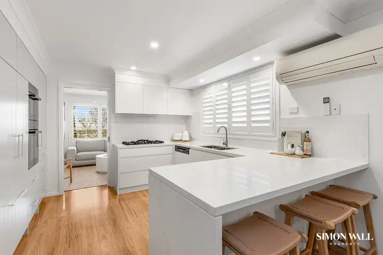 Immediately upon entering inside this neutral toned home you will appreciate the sun drenched, light filled interiors. Resting in the heart of the home is the well-appointed, U-shaped kitchen that is perfectly placed for families who love to entertain. The spacious kitchen is the real showstopper complete with everything you need and features 40mm thick quality Caesarstone bench tops, gas top cooking, Miele dishwasher and oven, combined steam/microwave oven, ample storage, plus a seamlessly integrated fridge hidden behind the VJ cladding paneling.