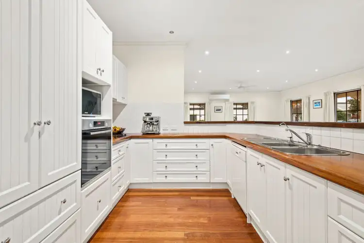 -Elegant country-style kitchen with Bosch appliances and an abundance of timber bench space & white panelled cabinetry