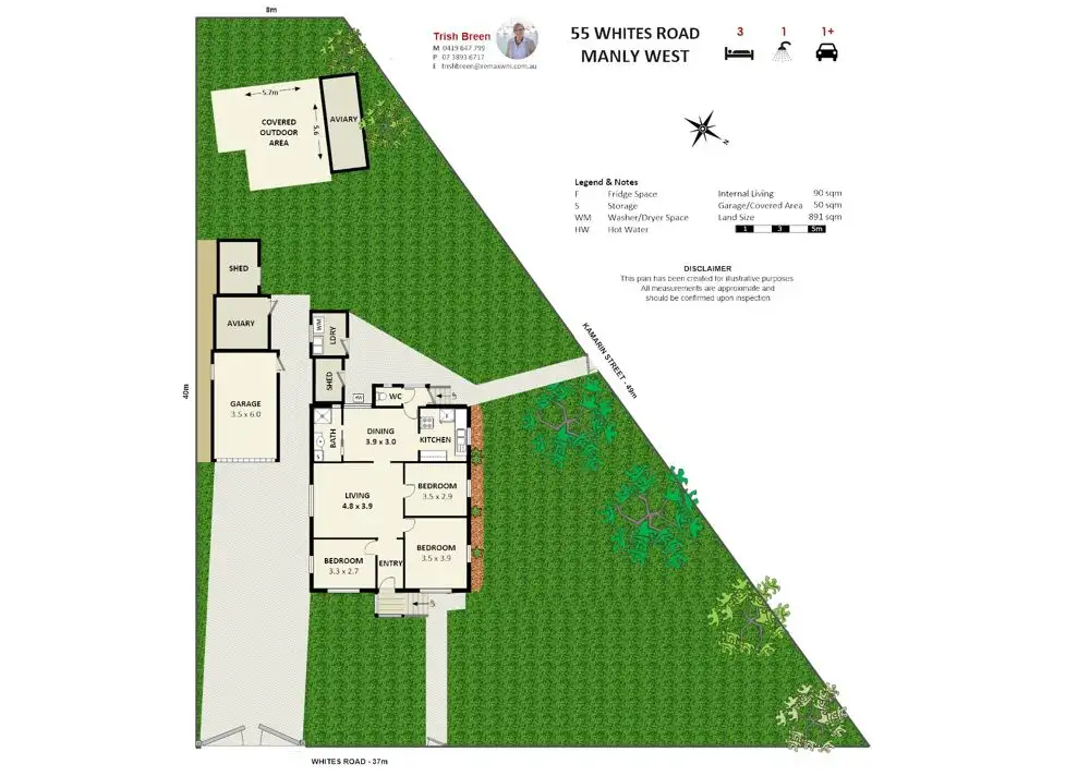 3 Bed • 1 Bath • 2 Car • 891m²