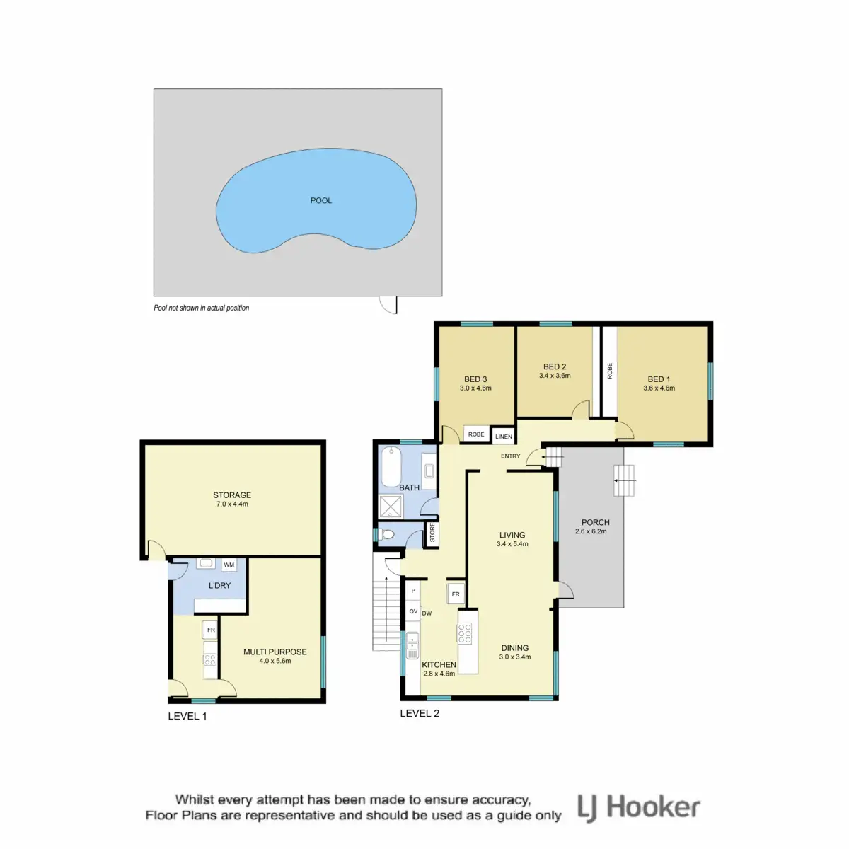 The home has been meticulously cared for and upgraded and features high ceilings, rich hardwood timber floors, neutral paintwork, oversized casement windows, upgraded LED downlighting, air-conditioning and spacious internal proportions. The highset floorplan comprises a light filled living/dining area, contemporary kitchen with stone benchtops, 3 sizeable bedrooms, chic modern bathroom and a sunny front veranda. Downstairs is just under legal height but provides a great rumpus room or dual living option, kitchenette and laundry. Plumbing and space is available to install a bathroom downstairs if desired. New Colorbond fencing with a remote gate ensures absolute privacy and the sparkling inground pool will be popular with families.