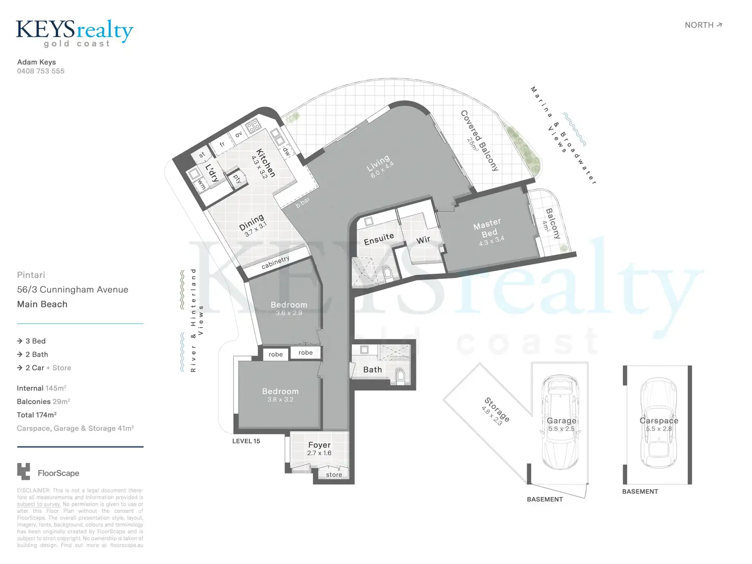 “Huge North-East Facing Apartment With Stunning Ocean & Broadwater Views AND 2 Separate Cars + Storage”