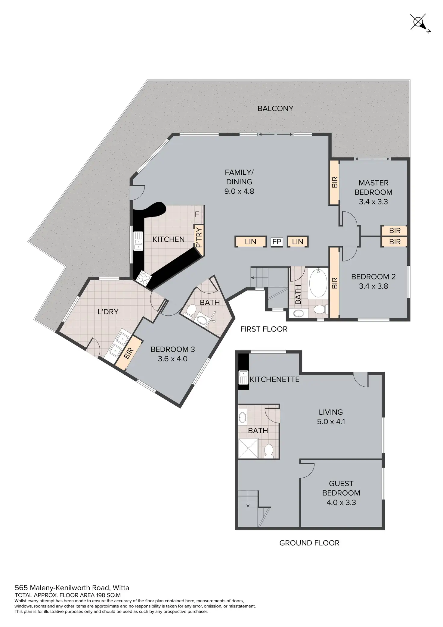 - Fully self-contained unit downstairs with separate access to upstairs, featuring one spacious bedroom, near new bathroom, kitchenette and comfortable lounge area