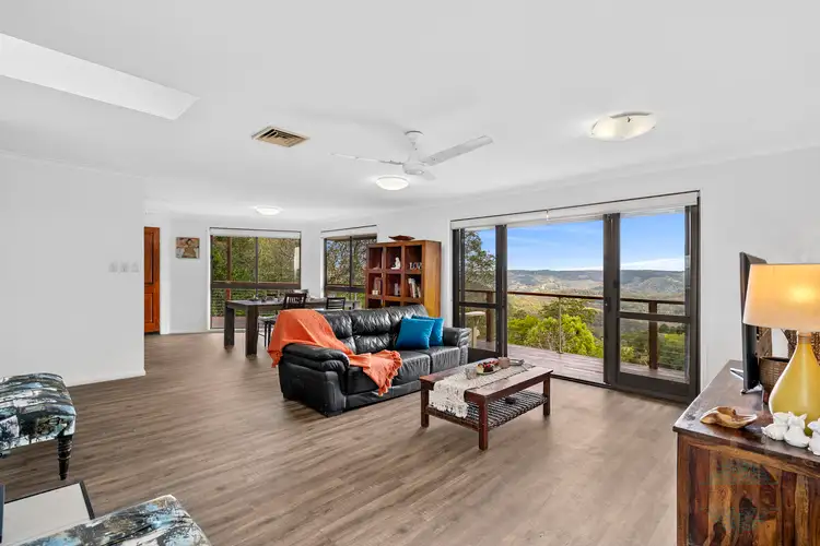 Situated on the scenic Maleny-Kenilworth Road and proudly positioned at the top of a 8032m2 block. Imagine waking up every day to the most gorgeous uninterrupted views of the mountains and valley beyond. Views that go on forever and can be enjoyed from the master bedroom, kitchen, dining, living and balcony areas. This dual living home is positioned in one corner of the block enabling the owner to make full use of the remaining land.
