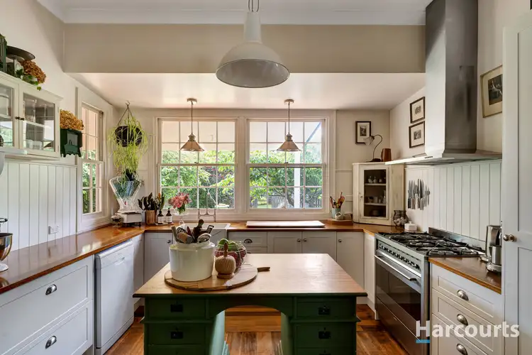 Step into the country kitchen and you'll instantly feel its heart. With its roaring wood heater warming the space, a practical large gas stove with electric oven, and views stretching out over the gardens and deck, this is the kind of kitchen where everyone gathers. The charming dining nook makes you feel right at home-morning sunlight spilling across the table, the smell of coffee drifting in, the garden framing every moment.