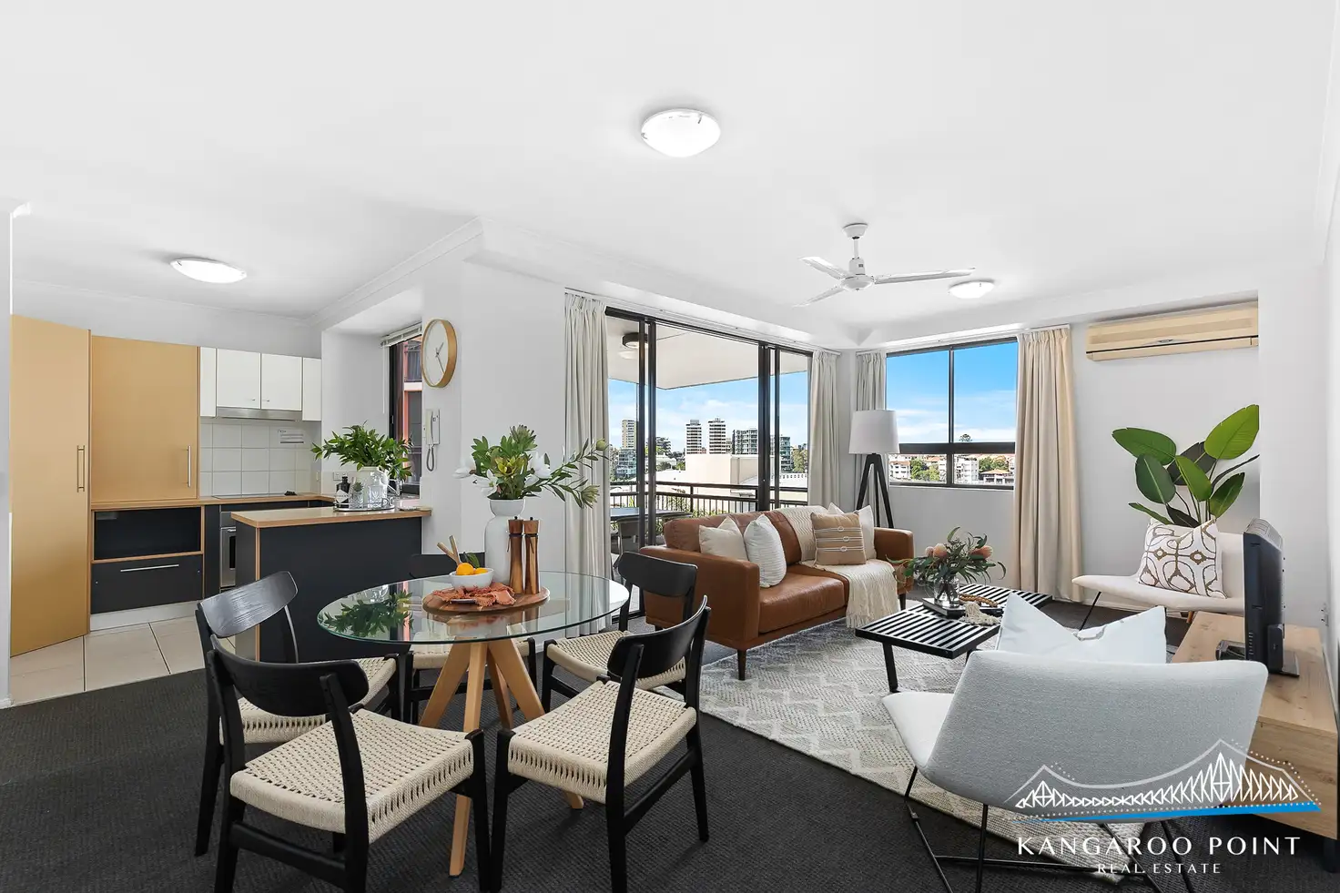 Kangaroo Point is an upscale inner-city peninsula paradise, surrounded by water and parklands. Transport needs are serviced by ferries, City Cats, buses with quick access to the Clem Jones tunnel, South East Freeway and Story Bridge. Entertainment is supplied by the Jazz Club, Story Bridge Hotel and the Gabba'.